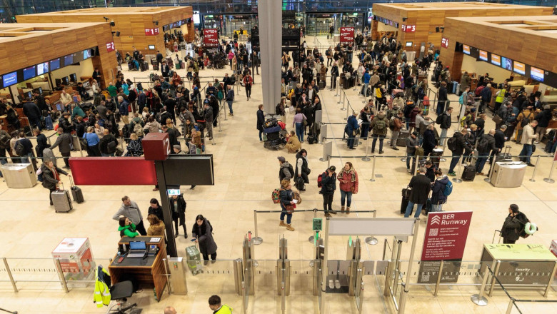 Mange rumenere og andre var strandet på Berlin Brandenburg lufthavn fredag etter at flere flyvninger ble kansellert eller forsinket, inkludert til Romania, på grunn av ekstremt vær.